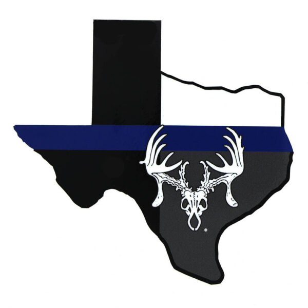 TTHA’s skull logo is in a Texas shape with the Thin Blue Line. Decal for sticking on glass or metal.