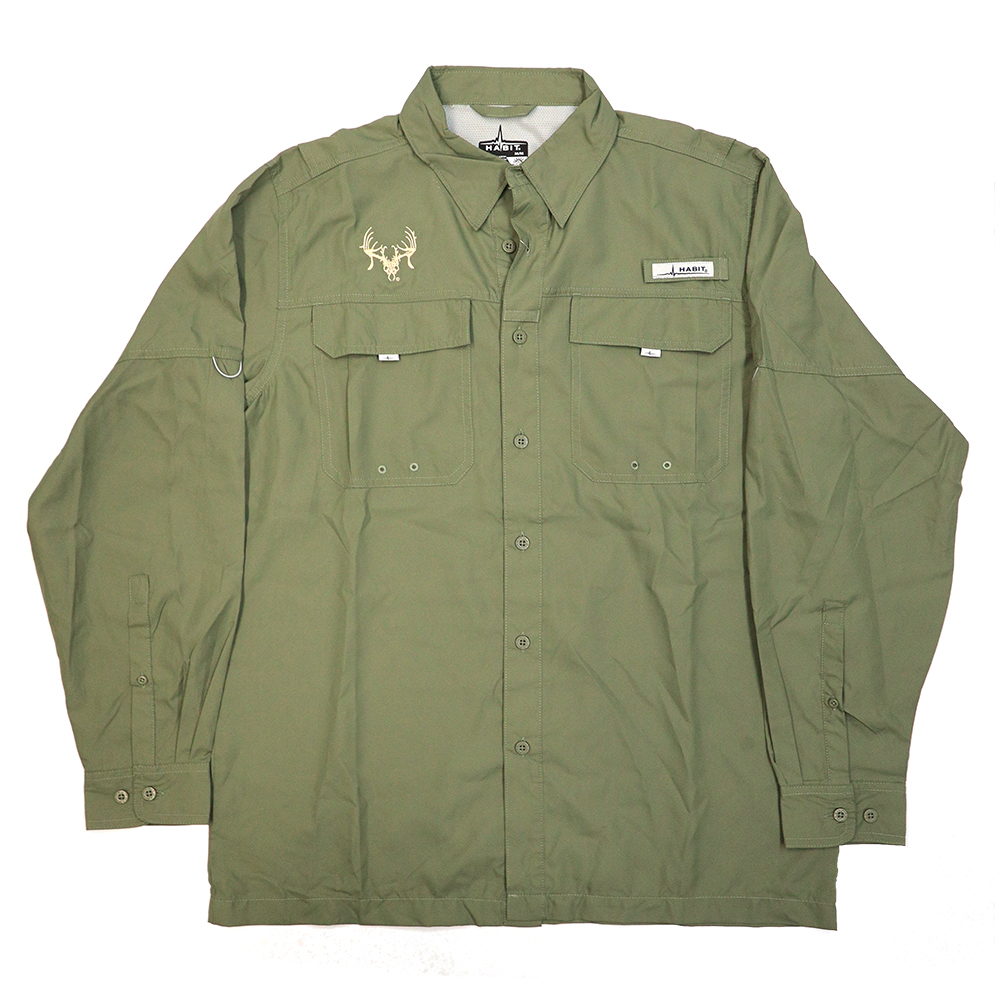HABIT green outdoors long sleeve shirt. TTHA logo in green on the right chest.